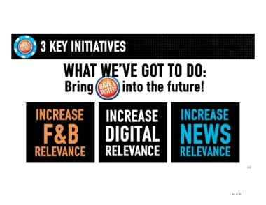 44 44 of 50 increase news relevance What we’ve got to do: Bring into the future! increase digital relevance 3 key initiatives increase F&B relevance