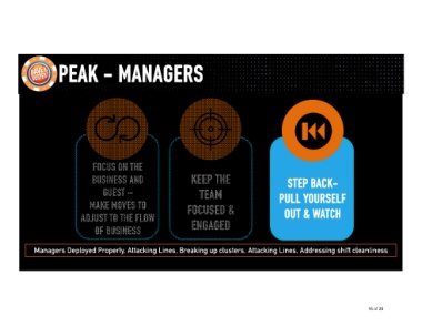 Peak - Focus on the business and guest – make moves to adjust to the flow of business