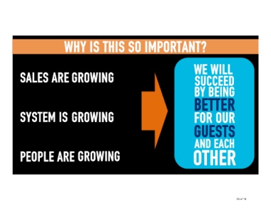 13 of 19 We will succeed By being Better For our guests And each other Why is this so important? growing growing growing Sales are System is People are