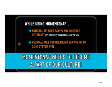 35/50 go up increase control group of 18%) Regional full service brand saw ppa While using momentsnap… National retailer saw 9% yoy per ticket (27% per ticket vs 3.36% system wide