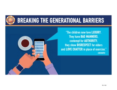 Breaking the Generational Barriers “The children now love luxury. for elders love chatter in place of exercise.” -socrates 35 of 38 They have bad manners, contempt for authority; they show disrespect and