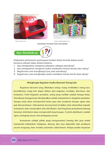 4. Bagaimana cara menghargai usaha membuat benda-benda daur ulang?