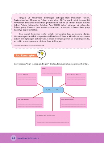 Dari bacaan “Hari Menanam Pohon” di atas, lengkapilah peta pikiran berikut.