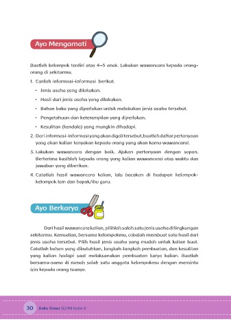 Buatlah kelompok terdiri atas 4–5 anak. Lakukan wawancara kepada orang-