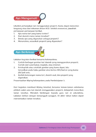 pilihlah salah satu tari daerah menggunakan properti. Belajarlah menarikan