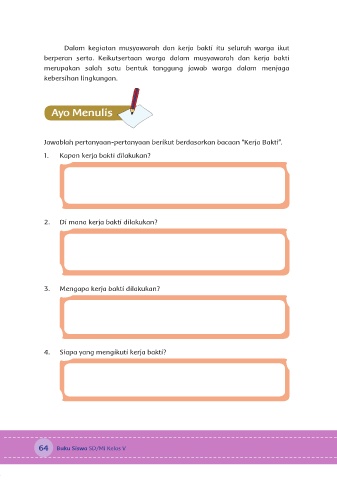 Jawablah pertanyaan-pertanyaan berikut berdasarkan bacaan “Kerja Bakti”.