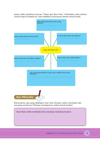Kamu telah membaca bacaan “Dayu dan Ikan Hias”. Perhatikan peta pikiran