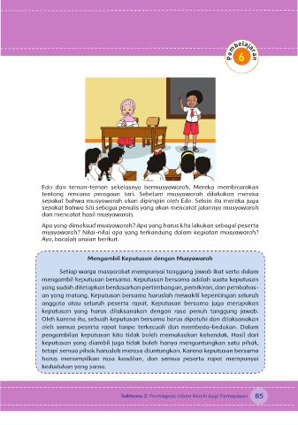 Edo dan teman-teman sekelasnya bermusyawarah. Mereka membicarakan