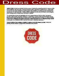 DRESS CODE: Students are expected to dress, groom, and otherwise conduct themselves in a manner, which