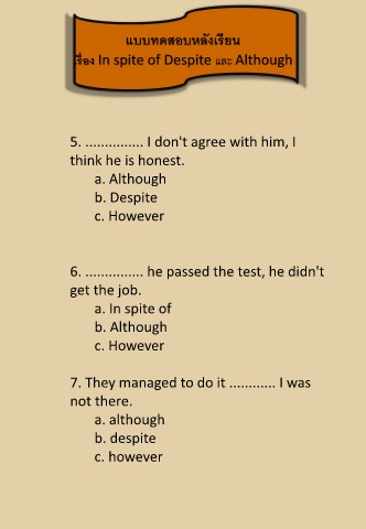 เรื่อง In spite of Despite Although