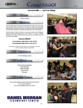 The Cosmetology Program provides training in hair, skin and nails. restaurant management concepts and work with commercial