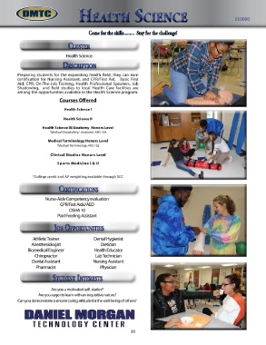 Health Science courses. Aide Exam will be given for certification to work. Prior to entering the