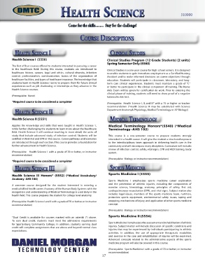 among the opportunities available in the Health Science program. healthcare history, careers, legal and ethics, cultural diversity, infection Clinical Studies is a one-year course for high school seniors. It is designed