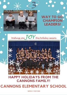 WAY TO GO, CHAMPION LEADERS! HAPPY HOLIDAYS FROM THE CANNONS FAMILY! CANNONS ELEMENTARY SCHOOL WEEKLY EDITION