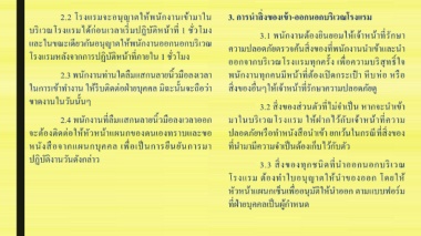 บริเวณโรงแรมได้ก่อนเวลาเริ่มปฏิบัติหน้าที่ 1 ชั่วโมง 3.1 พนักงานต้องยินยอมให้เจ้าหน้าที่รักษา