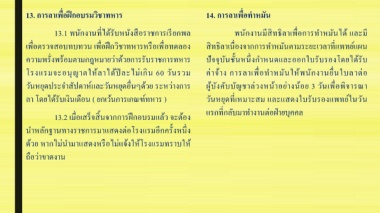 13.1 พนักงานที่ได้รับหนังสือราชการเรียกพล                                                   พนักงานมีสิทธิลาเพื่อการท าหมันได้ และมี