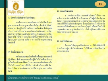 ตลอดเวลา ที่อยู่ในบริเวณโรงแรม เมื่อเจ้าหน้าที่บุคคล เหตุผลเพียงพอ จะถูกตัดเงินค่าจ้าง ทั้งนี้ อยู่ในดุลยพินิจของ