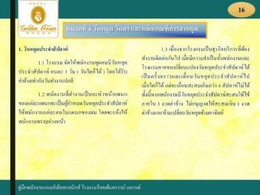 1. วันหยุดประจ ำสัปดำห์ 1.3 เนื่องจากโรงแรมเป็นธุรกิจบริการที่ต้อง