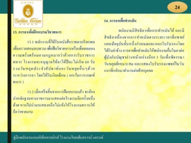 13. กำรลำเพื่อฝึกอบรมวิชำทหำร พนักงานมีสิทธิลาเพื่อการท าหมันได้ และมี