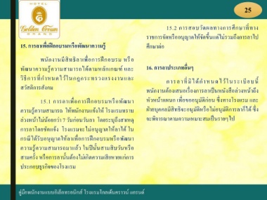 1 5 .1 การลาเพื่อการฝึ กอบรมหรือพัฒนา หัวหน้าแผนก เพื่อขออนุมัติก่อน ซึ่งทางโรงแรม และ