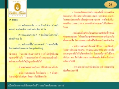 17.3 พนักงานที่ยื่นใบลาออกแล้ว โรงแรมไม่มีน - พนักงานต้องส่งใบลาที่ได้รับการอนุมัติแล้ว
