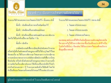 โรงแรมได้ก าหนดบทการลงโทษทางวินัยไว้ 4 ขั้นตอน ดังนี้ โรงแรมได้ก าหนดบทลงโทษทางวินัยไว้ 3 สถาน ดังนี้
