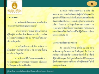 - ส าหรับพนักงานระดับอื่น ระดับ 4 –7 โรงแรมได้ก าหนดให้พนักงานครบ