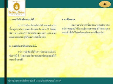 ขึ้นอยู่กับนโยบายของโรงแรมในแต่ละปี โดยจะ พนักงานทุกคนให้มีความรู้ความช านาญ ทั้งในและนอก