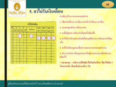 5. ส่งให้แก่ฝ่ ำยบุคคลเพื่อตรวจสอบกำรลำของพนักงำน