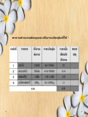 ตารางค านวณต้นทุนและปริมาณวัตถุดิบที่ใช้ *