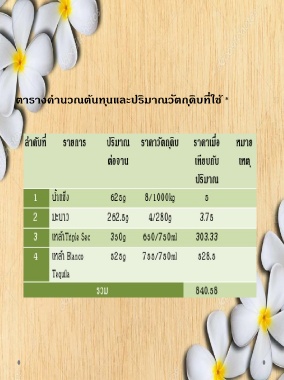 ตารางค านวณต้นทุนและปริมาณวัตถุดิบที่ใช้ *
