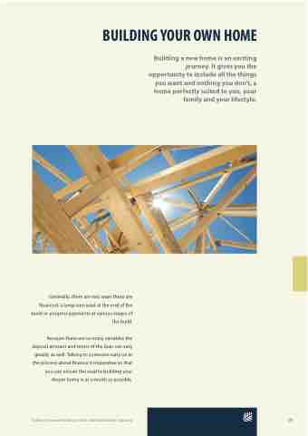 Because there are so many variables the deposit amount and terms of the loan can vary greatly as well. Talking to someone early on in the process about nance is imperative so that you can ensure the road to building your dream home is as smooth as possible.