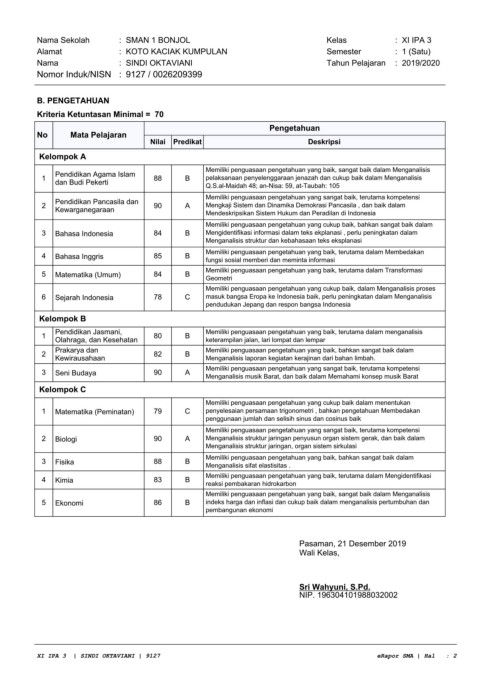 XI IPA 3 | SINDI OKTAVIANI | 9127 eRapor SMA | Hal : 2