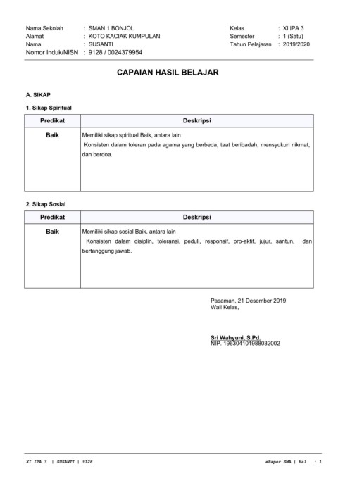 XI IPA 3 | SUSANTI | 9128 eRapor SMA | Hal : 1