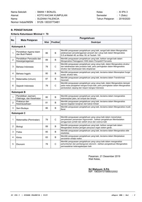 XI IPA 3 | SUZANA FALENCIA | 9129 eRapor SMA | Hal : 2