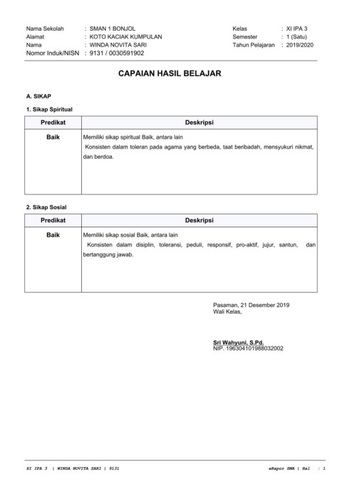 XI IPA 3 | WINDA NOVITA SARI | 9131 eRapor SMA | Hal : 1