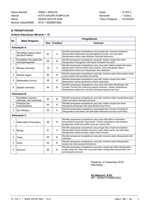 XI IPA 3 | WINDA NOVITA SARI | 9131 eRapor SMA | Hal : 2