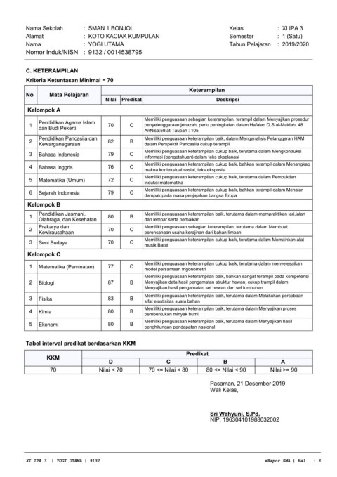 XI IPA 3 | YOGI UTAMA | 9132 eRapor SMA | Hal : 3