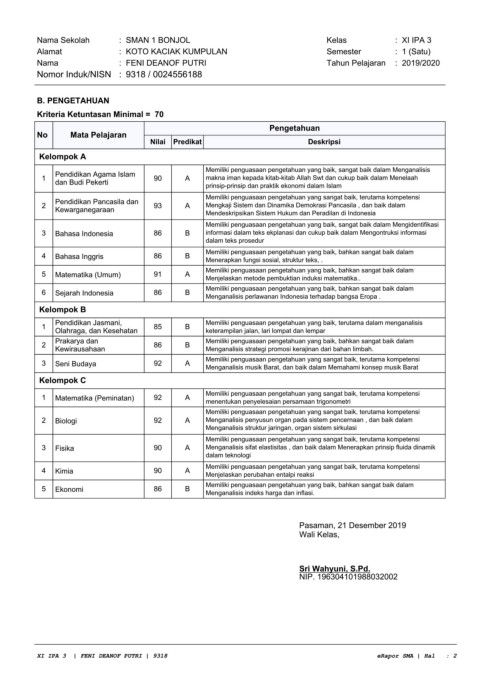 XI IPA 3 | FENI DEANOF PUTRI | 9318 eRapor SMA | Hal : 2