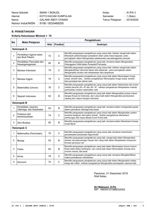 XI IPA 3 | GALANK ABOY CHANIA | 9108 eRapor SMA | Hal : 2