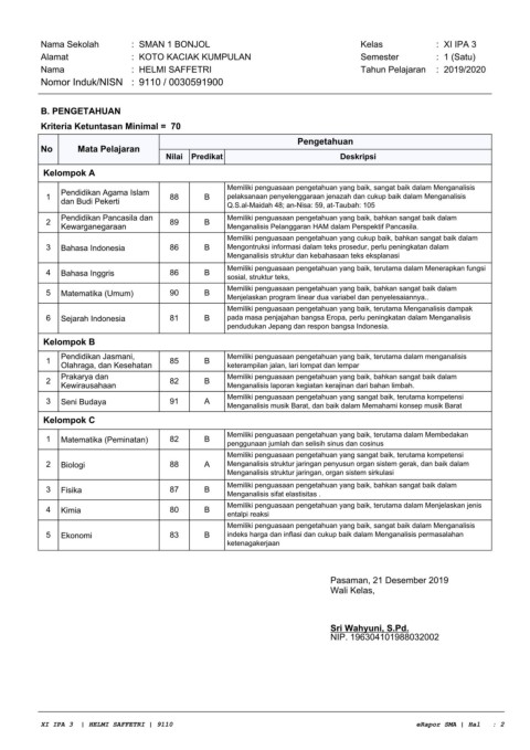 XI IPA 3 | HELMI SAFFETRI | 9110 eRapor SMA | Hal : 2