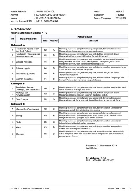 XI IPA 3 | KHAMILA NURHASIDAH | 9112 eRapor SMA | Hal : 2