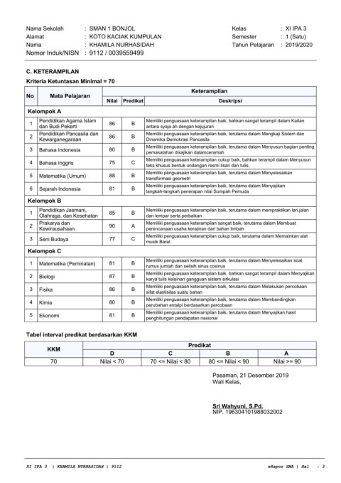 XI IPA 3 | KHAMILA NURHASIDAH | 9112 eRapor SMA | Hal : 3