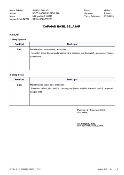 XI IPA 3 | MUHAMMAD ILHAM | 9115 eRapor SMA | Hal : 1