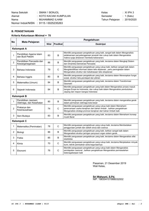 XI IPA 3 | MUHAMMAD ILHAM | 9115 eRapor SMA | Hal : 2