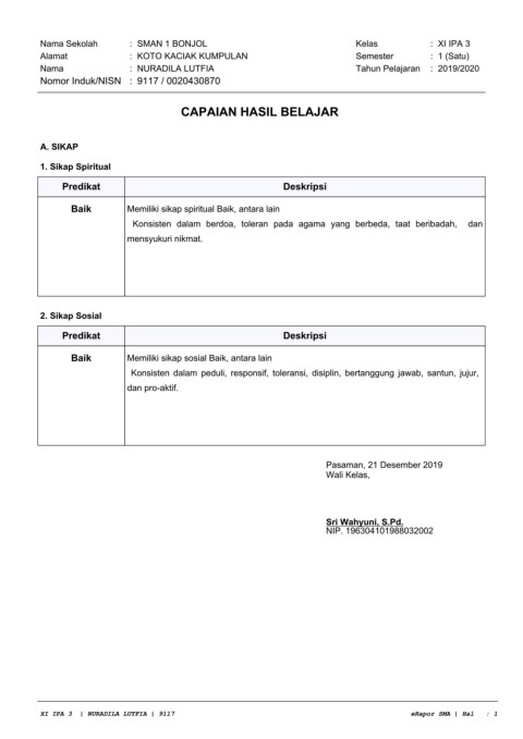 XI IPA 3 | NURADILA LUTFIA | 9117 eRapor SMA | Hal : 1