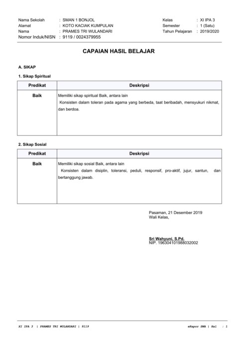 XI IPA 3 | PRAMES TRI WULANDARI | 9119 eRapor SMA | Hal : 1