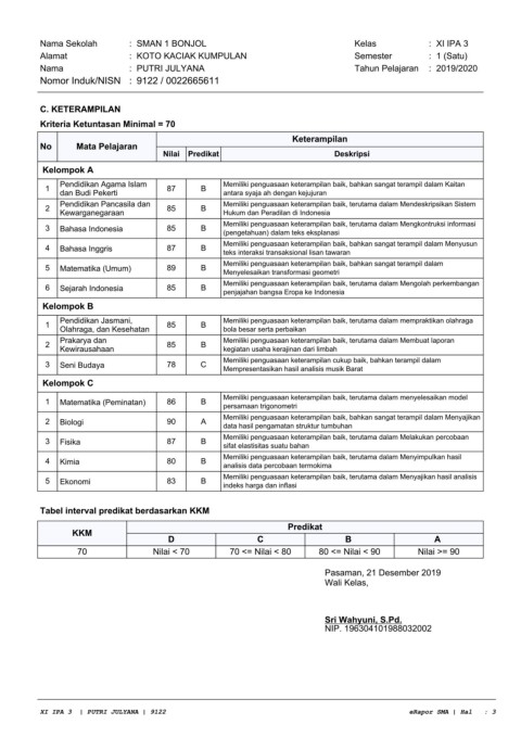 XI IPA 3 | PUTRI JULYANA | 9122 eRapor SMA | Hal : 3