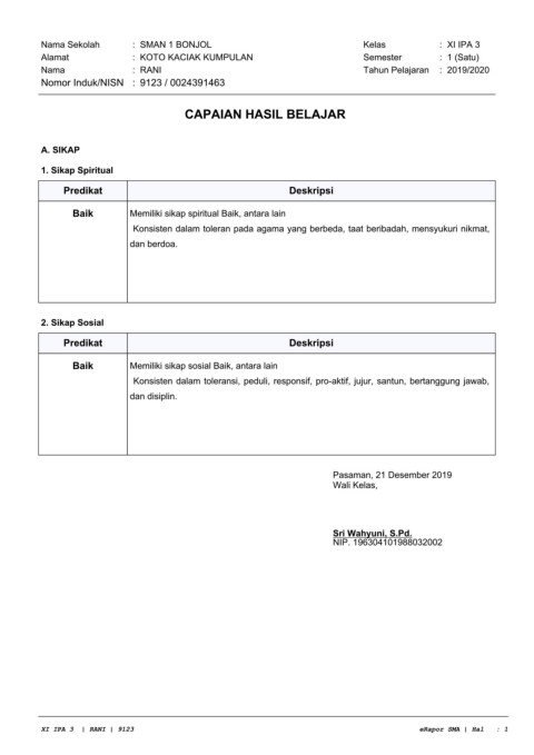 XI IPA 3 | RANI | 9123 eRapor SMA | Hal : 1