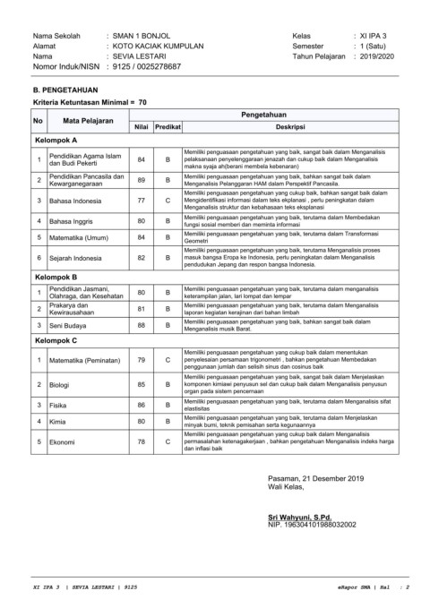 XI IPA 3 | SEVIA LESTARI | 9125 eRapor SMA | Hal : 2